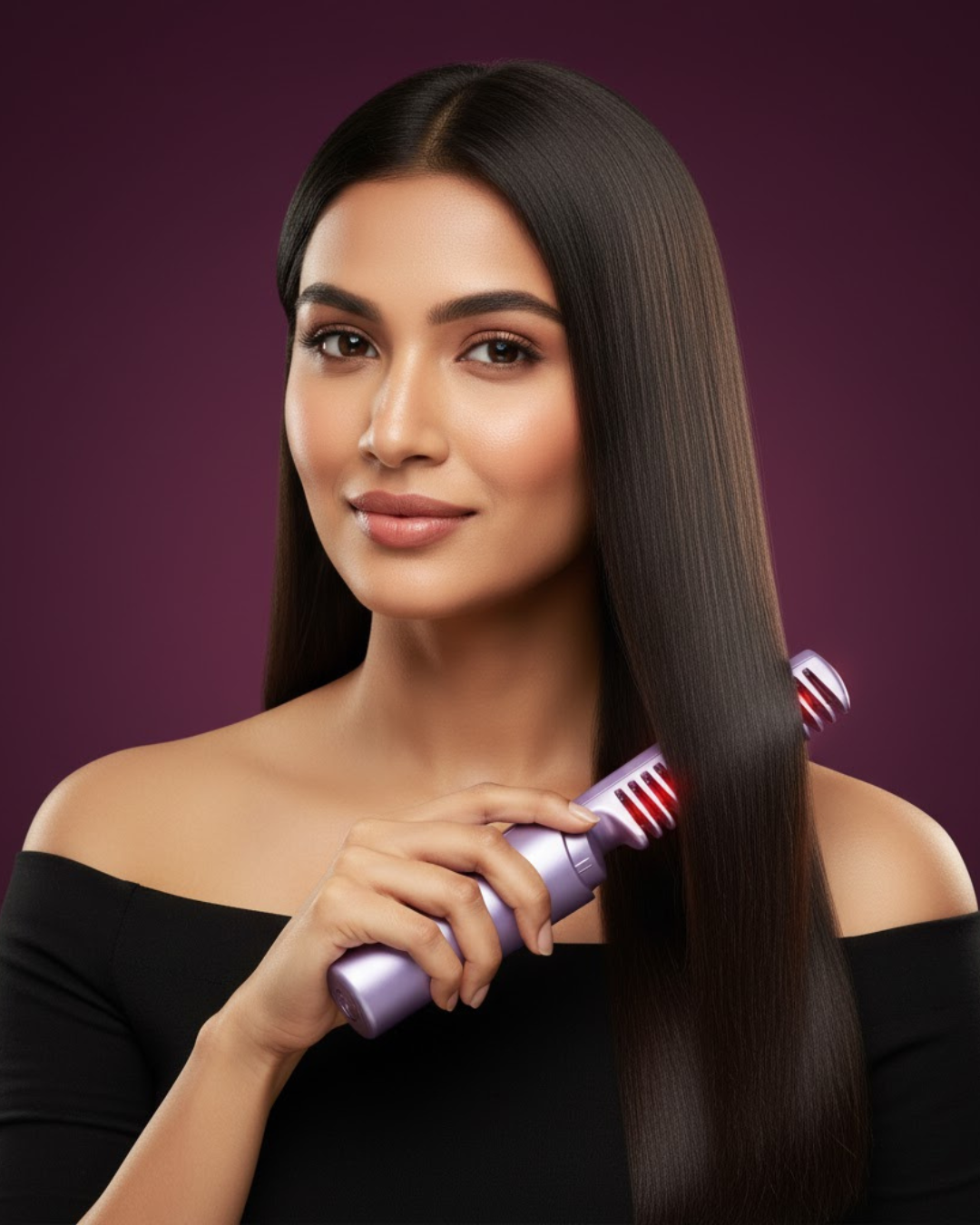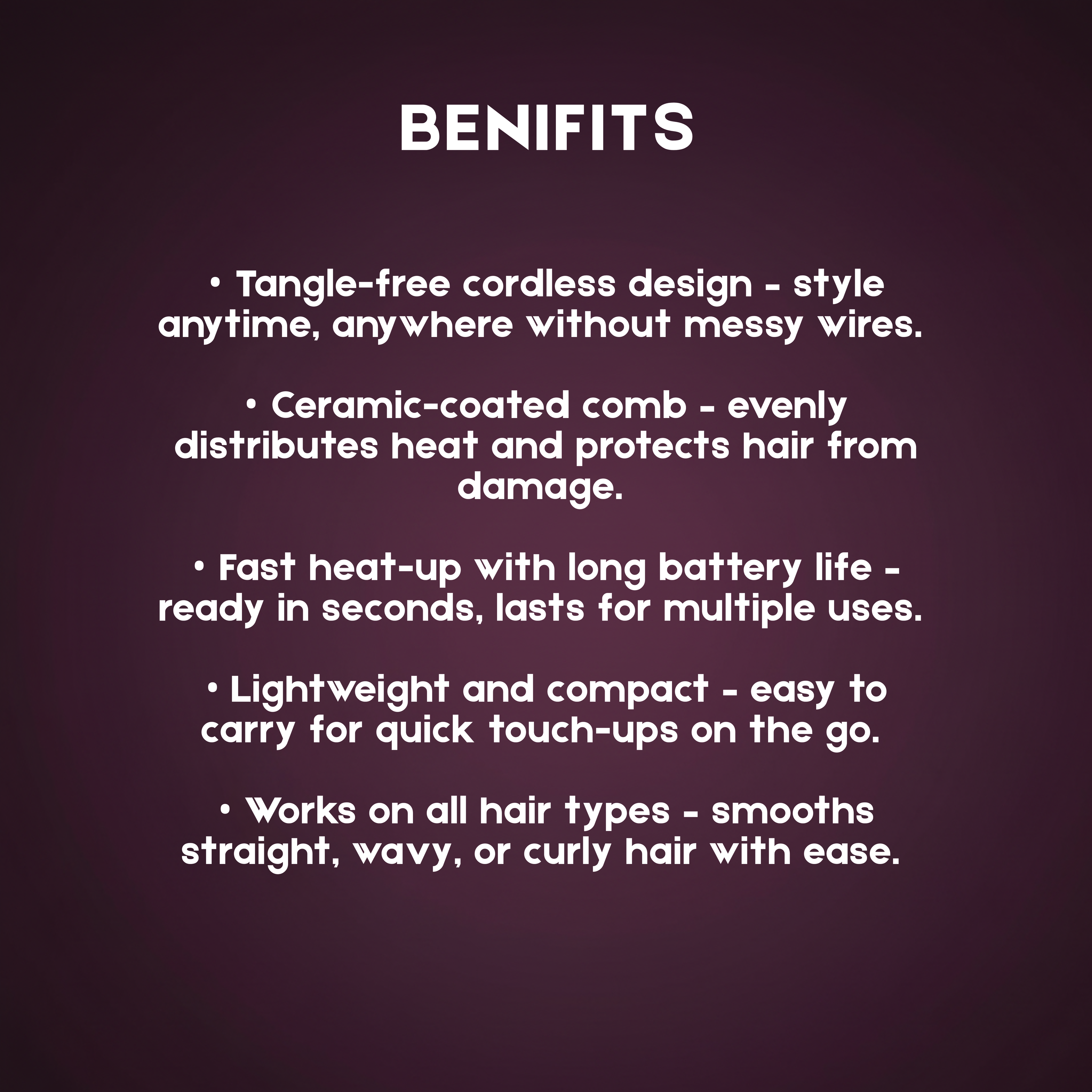 Say goodbye to frizz, burns, and hours wasted styling — meet "Comby", India’s cordless ceramic hair straightener comb that gives you salon-smooth, shiny hair in minutes. With advanced ceramic coating technology for even heat and zero damage, Comby glides through every strand effortlessly, leaving your hair straight, safe, and stunning — anytime, anywhere.
